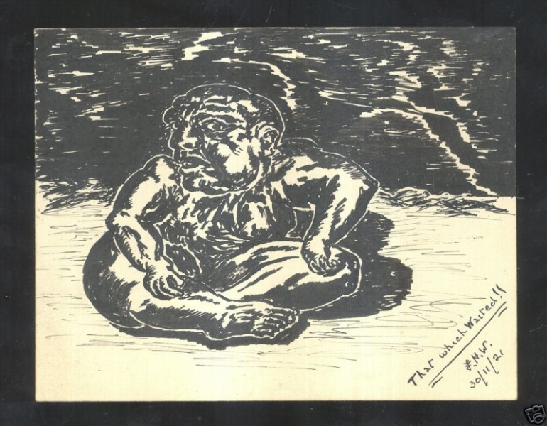 These sketches by an unknown reader were found in an old copy of The Night Land. They are dated 1921 and are in the public domain.