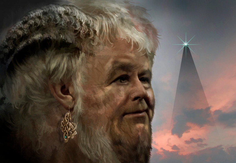 Another picture for "And the Sky is Filled with Eyes." Grand Captain Schea and the returning starship. I think the ship looks properly massive.